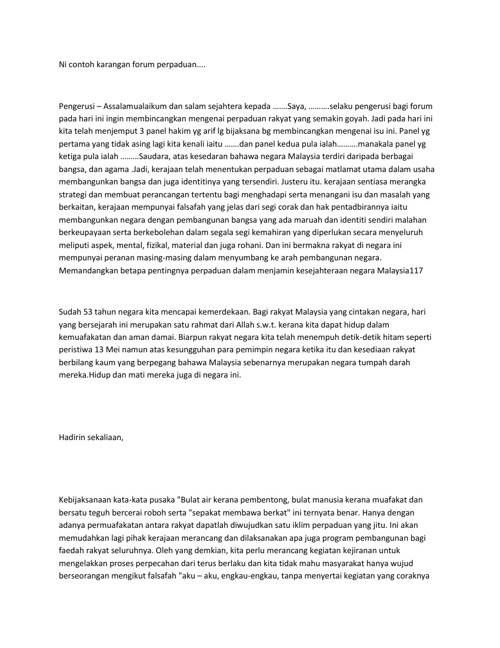 Selaku pengerusi bagi forum pada hari. Ni contoh karangan forum perpaduan. Penutup Karangan Punca Masalah Sosial.