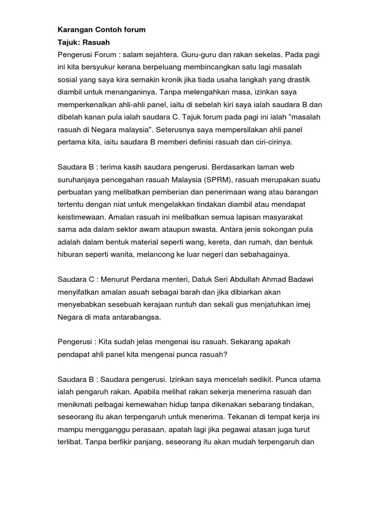 Viewing 1 post of 1 total Author. Contoh Teks Forum Remaja PENDISIPLINAN PELAJAR. Contoh Karangan Tingkatan 1 Pdf.